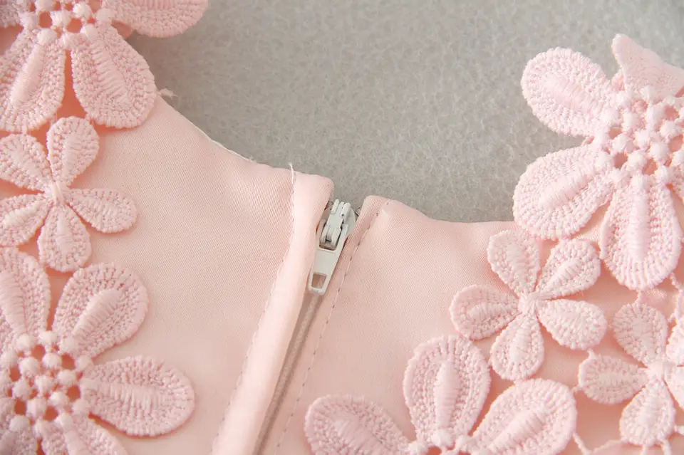 Mooie feestjurk, leuk voor een bruiloft, fotoshoot of verjaardagsfeest. Het jurkje is afgewerkt met kanten en een ceintuur. En kan je een strikje op de rug maken.