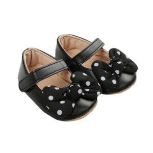 Prachtige, schattige kinderschoentjes voor meisjes van 12-18 maanden. Deze zwart schoentjes zijn van kunstleer (pu leer) en hebben een stevig flexibele zool en een goede pasvorm. Het grootste voordeel van dit kunstleer is dat het waterbestendig is, zacht aanvoelt en tevens veel minder weegt dan echt leer. Daarnaast is het diervriendelijk, vegan en duurzamer.