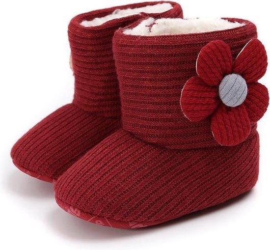 Deze schattige rode babyslofjes houden de voetjes van je kindje heerlijk warm, zowel in huis als buiten. De binnenkant van de slofjes is gevoerd met heerlijk zachte teddy zodat jouw baby altijd lekker warme voetjes heeft. De buitenkant is gebreid van katoen en de geeft samen met de katoenen zool flexibiliteit voor een goede pasvorm. Het rode bloempje op de zijkant maakt de sloffen af en zijn leuk voor uw kleine of kleinkind en hierdoor ook zeer geschikt als cadeau.